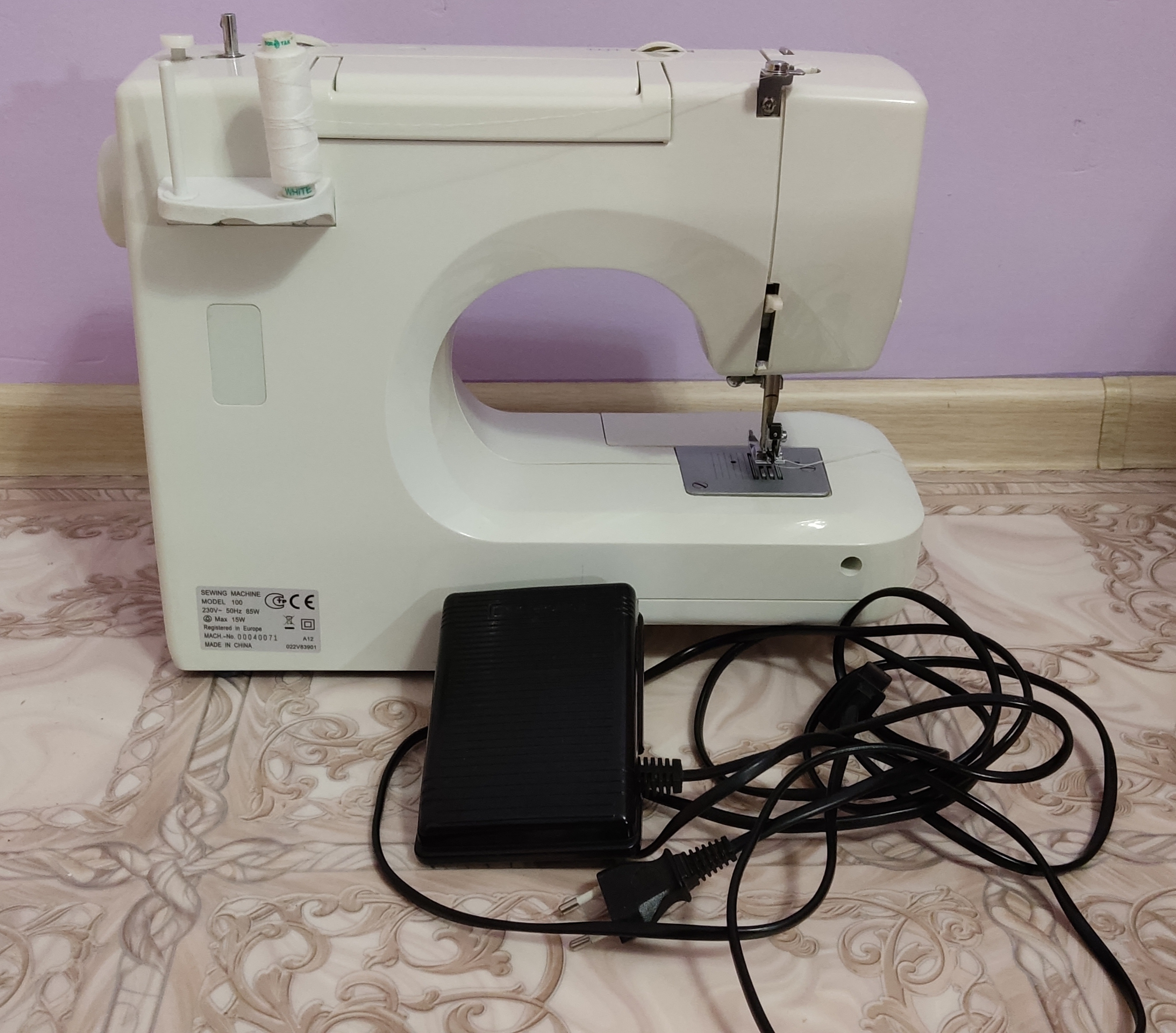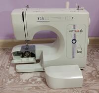 Швейная машина в идеальном , рабочем состоянии. К машинке прилагается: наборы иголок, напёрсток, метр, кнопки, петли, крючки, нитки, пуговицы,лекало.. Швейная машина работает с различными видами тканей, выполняет 9 видов строчек. В комплектацию входит комплект лапок: для вшивания молнии, для вымётывания петли,лапка - "зигзаг", для пришивания пуговиц, направляющая для выстёгивания. Вес 6 кг.