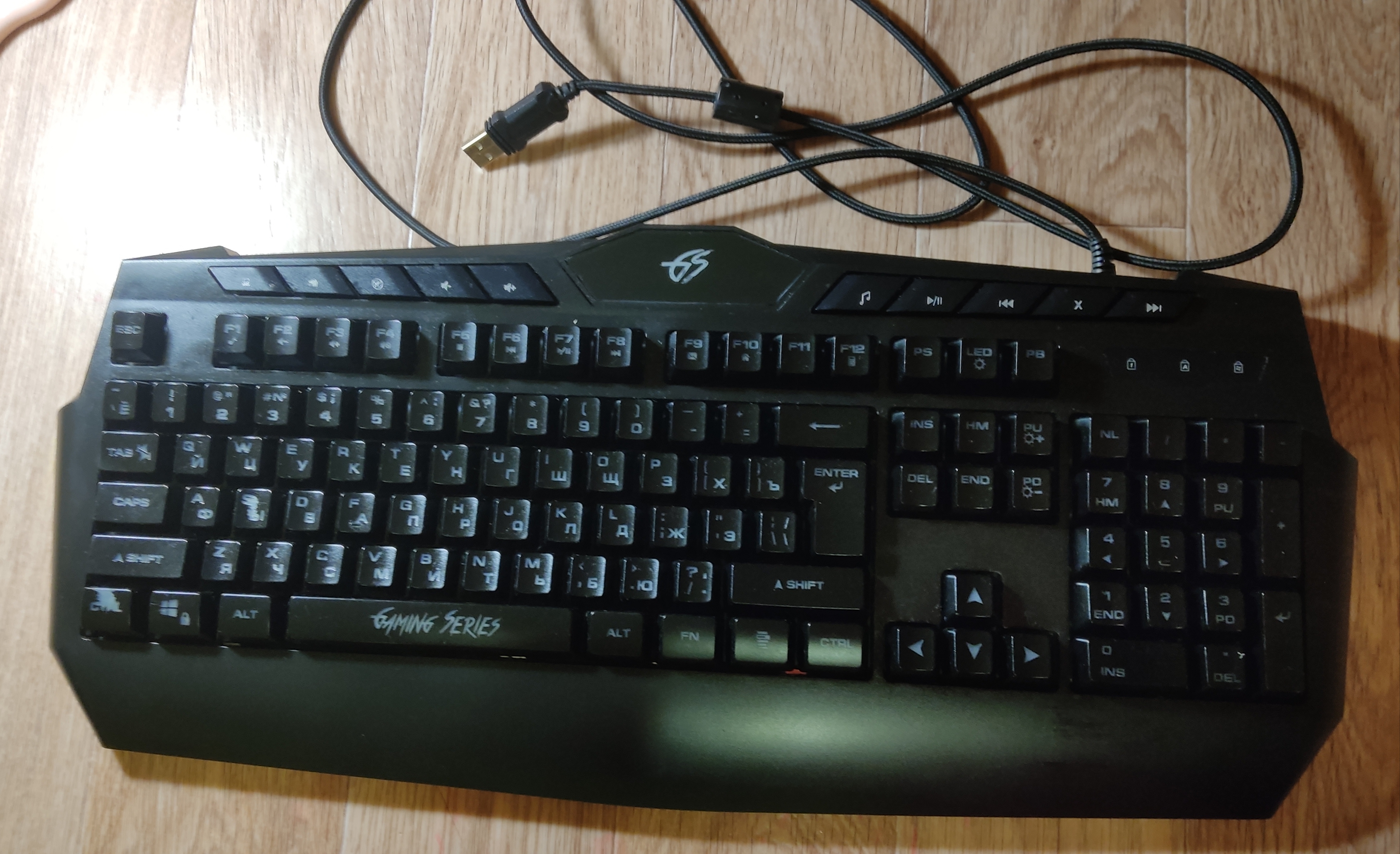 Клавиатура DEXP Hellfire GK-110 обладает мембранным механизмом. Встроенная трёхцветная подсветка, корпус из матового пластика, защита от попадания брызг воды. В отличном состоянии, но 2 клавиши слегка потёрты. В подарок : Кабель AUX (папа-мама), в\шнур SVHS - RSA1 (штекер позол. мет.)