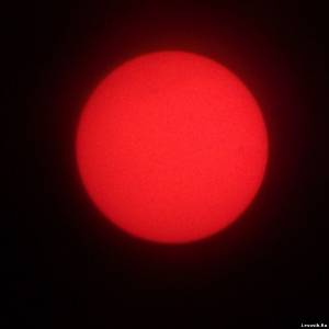 | Сегодня решил сфотать солнце. Фотографировал всё также без телескопа, зум 18х. В качестве фильтра использовал 3,5"дискету. На 3 часа, недалеко от края, видно солнечное пятно. Все остальные неоднородности - дефекты дискеты.