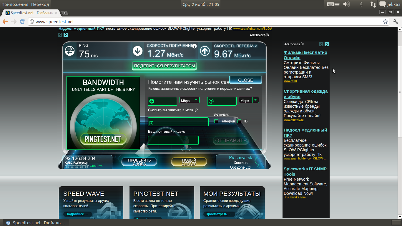 | Обидно. Подключил жипон ради стабильноси, получил - фуфло. Скорость даже с внутренних ресурсов падала в праздники вечером до 0,5 мегабита, даже на адсл такого небыло! Звонишь в тех-поддержку: Грят проблемы сетевухи или вирусы. А у меня два компа и на одном из них линукс, ну бред же...