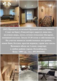 (043) ПРОДАЕТСЯ ДОМ В П. БАЙКАЛ